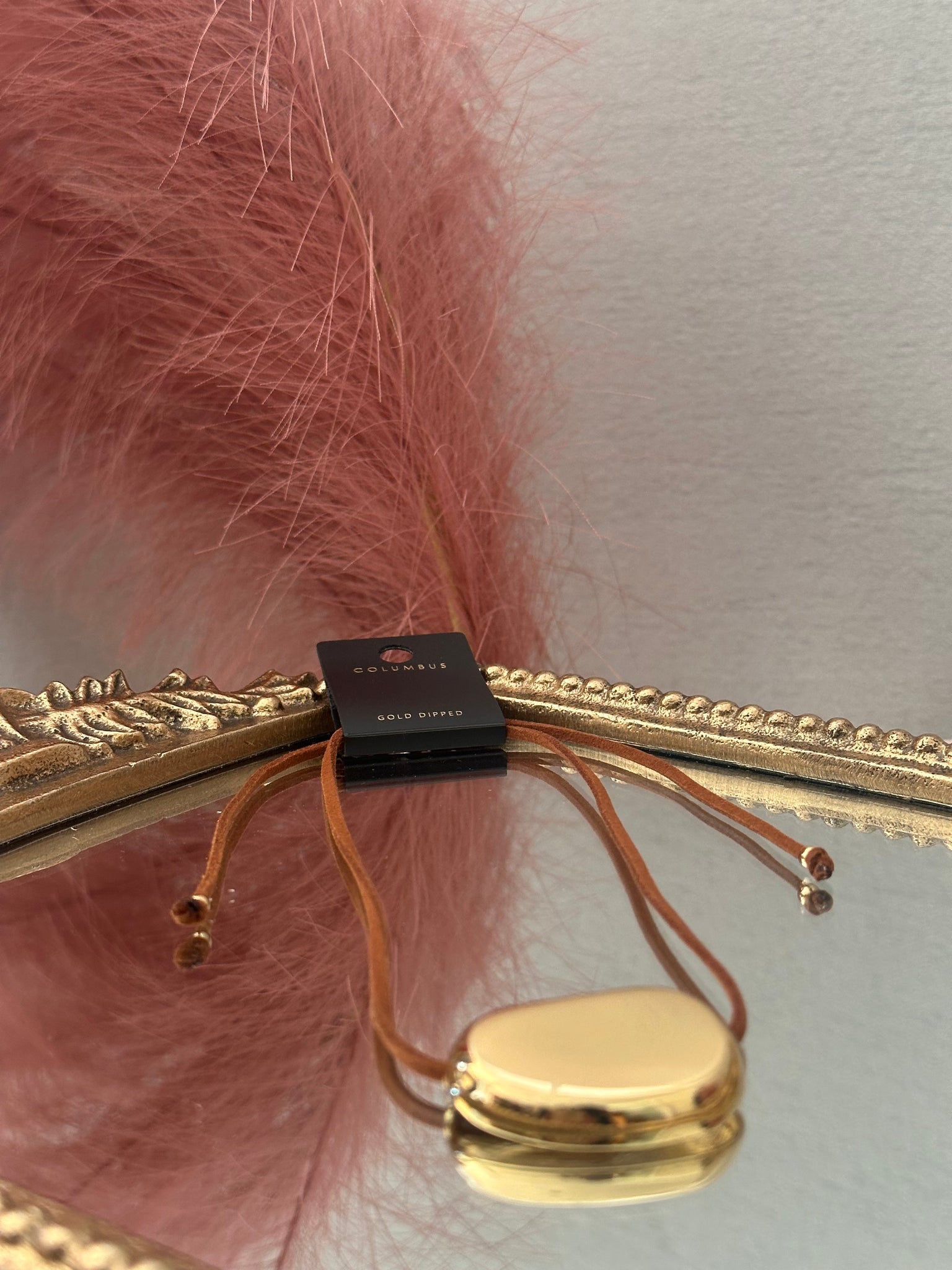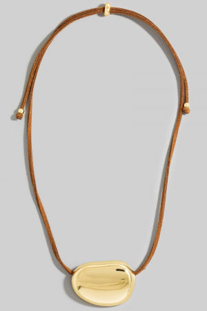 Effortlessly chic with an earthy touch, The Terra Necklace features a smooth gold-dipped oval pendant on a rich brown cord. Its minimalist design and organic texture make it the perfect blend of modern sophistication and natural charm — ideal for layering or wearing solo.