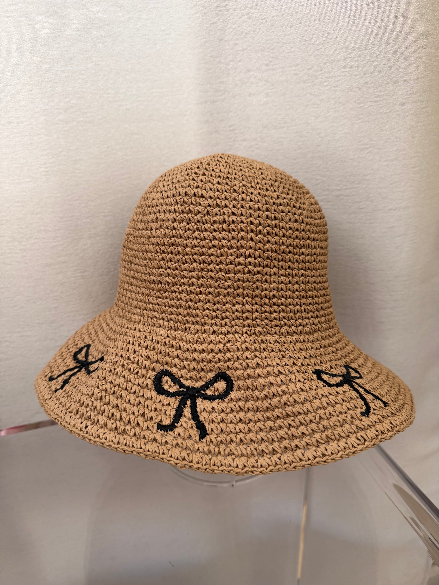 a lightweight straw hat with delicate bow details for the prettiest finishing touch